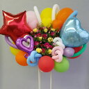 芸能人への祝花で豊富な実績のある「花助」による花を囲むように大き目のバルーンが盛られたかわいい商品です。